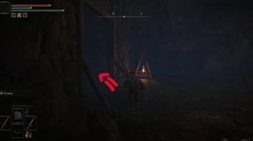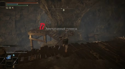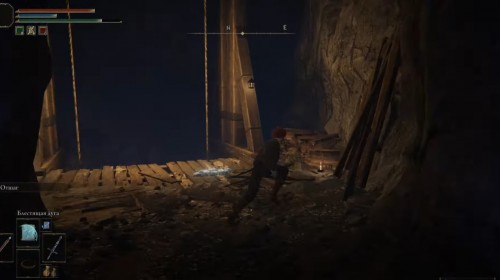 Войдя в туннель, активируйте местный «костер» и продолжайте углубляться в шахту. Оказавшись в просторной локации, пройдите к деревянному помосту впереди и спуститесь вниз. Там вы увидите сундук.