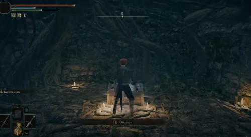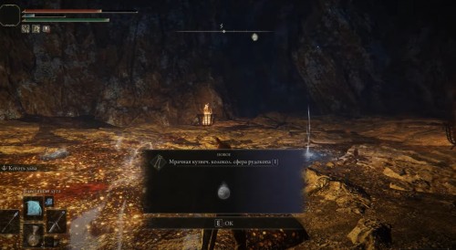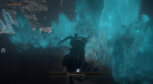 Войдя в рудник, спуститесь вниз на подъемнике и активируйте место благодати. Теперь пройдите вглубь пещеры, разбираясь со всеми рядовыми противниками или просто пробегая мимо них. Отметим, что здесь с некоторых врагов падают разные кузнечные камни. Можно также отыскать несколько кристальных образований с материалами.