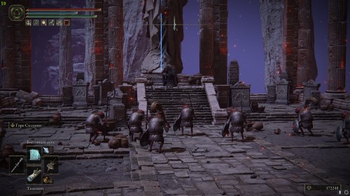 Судя по всему, приобрести их у торговцев нельзя, поэтому придется заняться поисками этих материалов. Отправляйтесь в место благодати Алтарь храма дракона, расположенное в Разрушенной Фарум-Азуле. Оттуда двигайтесь по дорожке снаружи, которая приведет вас к опасным стражникам, патрулирующим улицы, птицам и огромному дракону.