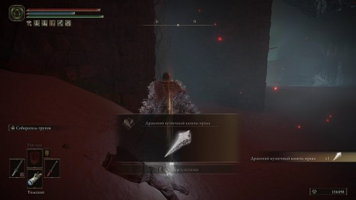 Ещё один драконий камень мрака можно отыскать в локации Центр мавзолея династии во Дворце Могвинов. Перед подъемником к боссу стоит группа монстров вокруг сундука. В этом сундуке и лежит нужный вам предмет. Точное место показано на скриншотах ниже.