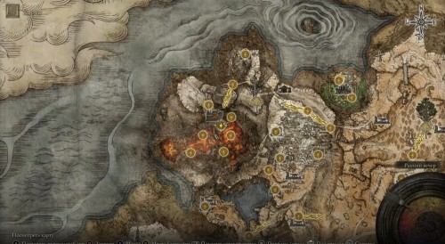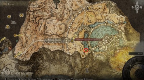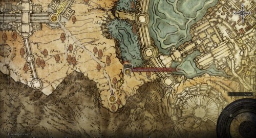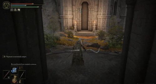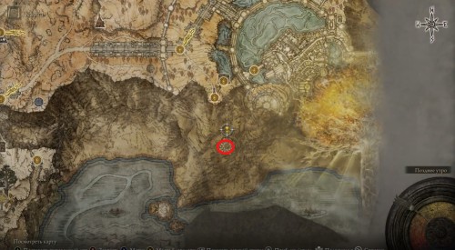 Вы можете призвать на помощь духа из праха в этом сражении. Разберитесь с данным противником, чтобы получить Двуручник ониксового повелителя и убрать барьер впереди. Выйдите через проход, чтобы наконец-то добраться до Священной башни Западного Альтуса. Ее точное расположение показано на карте ниже. Не забудьте активировать место благодати возле нее.