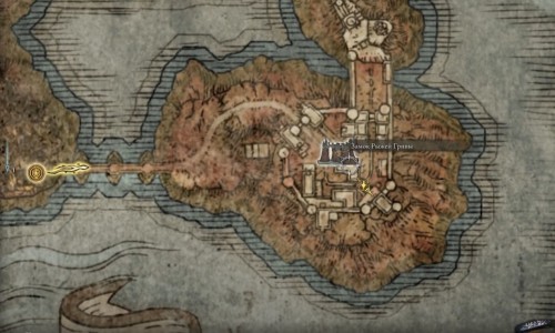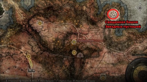 Заполучив нужную великую руну, переместитесь к месту благодати под названием Запад Драконьего кургана, расположенному на севере региона (смотрите скриншоты ниже). Затем скачите на северо-восток к огромной башне, виднеющейся вдалеке.