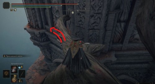 Если же спускаться вниз вы не собираетесь, то возле места благодати сверните направо и поднимитесь по каменной лестнице до самого конца. Добравшись до тупика, сверните влево и откройте каменные двери. Воспользуйтесь подъемником, чтобы взобраться на верхушку башни. Там вы увидите два пальца и свечение. Взаимодействуйте с ним для восстановления великой руны Радана.