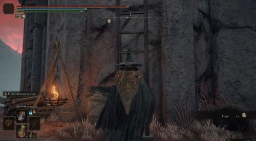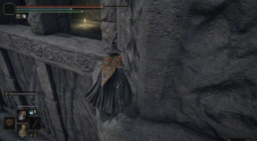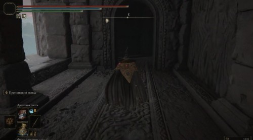 Поднявшись, сверните налево и бегите к месту благодати впереди. Отдохните возле него. Теперь вы можете пройти в проход слева и спуститься вниз по каменным выступам и с помощью клеток-подъемников. Делать это необязательно, однако тут вы сможете отыскать руническую дугу (возле трупа), которая пригодится вам в будущем. В самом низу, кстати, находится еще один «костер» и секретный босс Апостол божественной кожи.