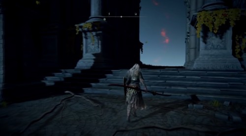 Сверните в проход справа и поднимитесь по лесенке на самую верхушку башни. Там вы обнаружите два гигантских пальца и свечение. Подойдите к нему, чтобы восстановить силу Великой руны Малении.