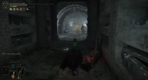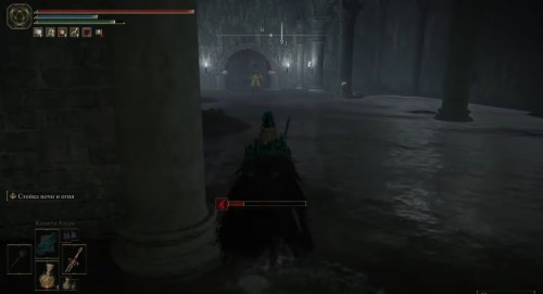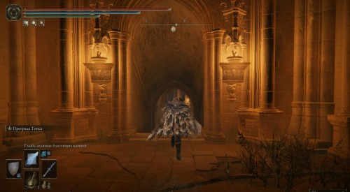 Войдя в него, активируйте место благодати и спуститесь вниз на подъемнике. Продолжайте спускаться, двигаясь вперед. Сражаться с монстрами при этом необязательно. Попав в просторную локацию с колоннами, пройдите дальше к решетке, а потом сверните вправо. Там возле прохода будет стоять рыцарь. Можете обойти его и подняться по лесенке.