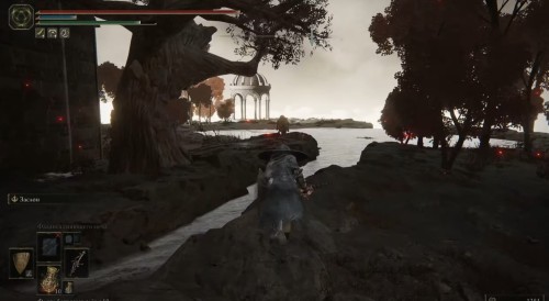 Двигайтесь по каменному плато, а потом по гнили до следующего корня на краю обрыва. Пройдите по нему, спрыгните на другой корень и поднимитесь на другой кусок земли. Справа будет проход. Вместо того чтобы зайти в него, поднимитесь наверх по склону. Снова пройдите по корню на другую сторону. В середине озера из гнили будет лежать нужный вам цветок. Однако перед тем как взять его, вам нужно будет сразиться с мини-боссом.
