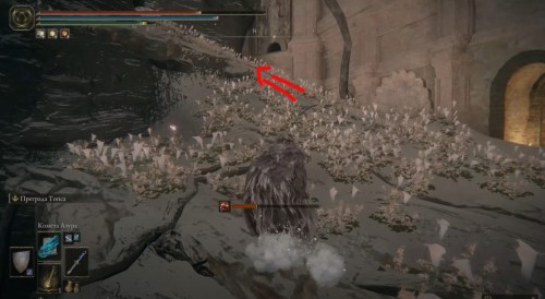 Еще один тоже можно найти в Сокрушенном Фарум Азуле. Переместитесь к Храму Дракона и двигайтесь к точке, показанной на скриншотах ниже. Вам нужно будет подняться по лесенке и осмотреть каменный гроб.