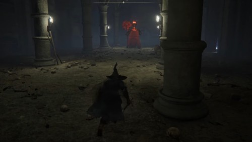 Пройдите вперед, сверните влево и поднимитесь по деревянной лесенке. Двигайтесь дальше, и вы окажитесь в просторном помещении с колоннами. Здесь также будет находиться огненный противник. Разберитесь с ним, чтобы отыскать позади него крупный могильный ландыш.