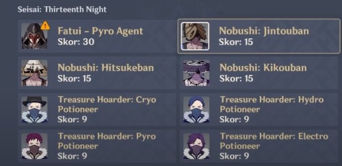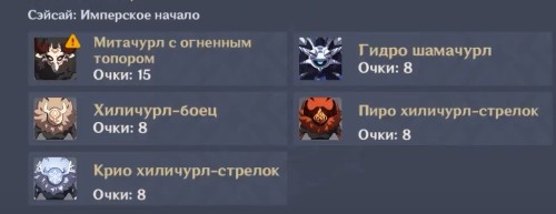 Персонажи с мощными AoE-атаками лучше всего показывают себя на последних волнах. Когда на вас начнут нападать группы, состоящие из Пиро агентов Фатуи, Электро магов Цицин или Зеркальные девы, мы советуем начать использовать персонажей, способных наносить большой урон по площади. Расставьте их в команды с IV по VI.