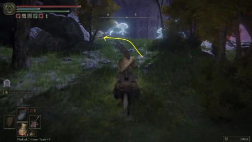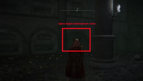 Попав в крипту, отыщите иллюзорную стену неподалеку от колонны (смотрите первый скриншот ниже). Ударьте по ней или совершите кувырок, чтобы открыть новый проход. В конце него будет сундук. Стукните стену за ним, чтобы убрать ее. В итоге вы разблокируете путь к месту благодати «Скалы со стороны корней», находящемуся в нужном вам регионе.