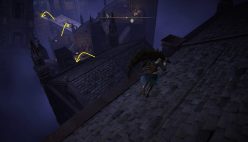 Итак, после входа в подземный городок, начните прыгать по крышам, чтобы дойти до упавшего здания. Далее прыгните на крышу за ним. Перейдите на выступ впереди и войдите в открытое окошко слева, чтобы войти в сооружение.