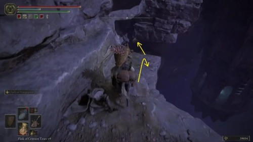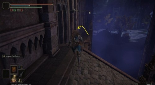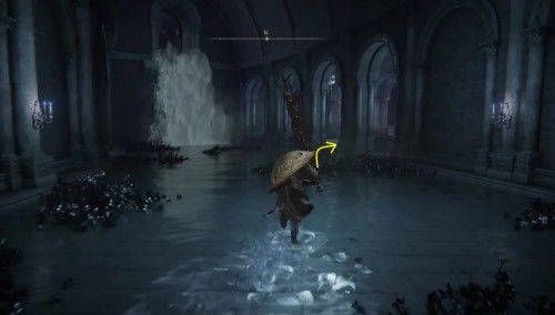 Спуститесь по ступенькам, пока не дойдете до самого низа. Сверните вправо и двигайтесь вперед. Там вы обнаружите золотую завесу. Пройдите через нее и сразитесь с боссом Ложная слеза. Разобравшись с ним, вы откроете дорогу к мосту на севере. Бегите по нему вперед и пройдите через гигантскую каменную арку.