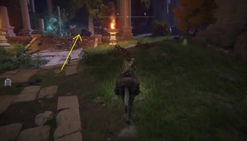 Далее двигайтесь по тропке слева и идите по каменной дорожке. Мощеная дорога должна будет привести вас в Священную землю Ночи. Бегите в лес, находящийся за этой локацией.