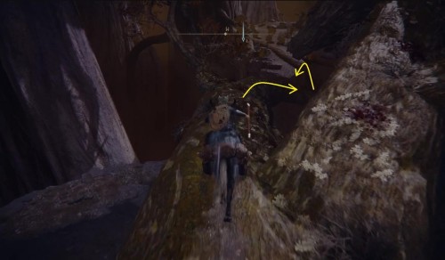 Попав в новую область, сверните вправо и бегите по огромной ветке, которая ведет на запад. Когда корень закончится, спрыгните на следующую ветвь слева, дабы в итоге дойти до участка земли впереди.