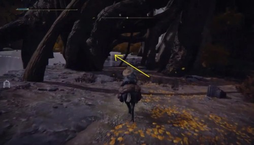 Скачите в западном направлении, и вскоре вы доберетесь до «костра» с названием Низовье Глубокого корня. Отсюда сверните вправо и пройдите под большими корнями.