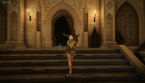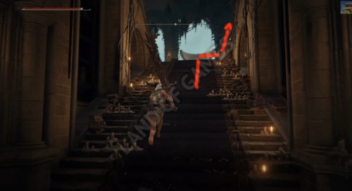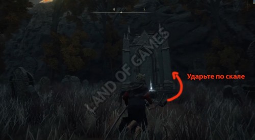 Поднявшись, войдите в здание с правой стороны. Пересеките его и снова выйдите наружу. Поднимитесь по ступенькам и подойдите к каменному святилищу впереди. Здесь появится огромный враг, с которого и выпадает нужный предмет.