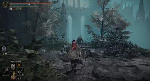 Как только выйдите за ворота, сразу же сверните влево и поднимитесь наверх по разрушенной лесенке, пройдя мимо двух мобов. Наверху вас будут ждать еще несколько противников. Сразитесь с ними или обойдите их, а затем взберитесь по ступенькам на верхнюю площадку.