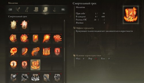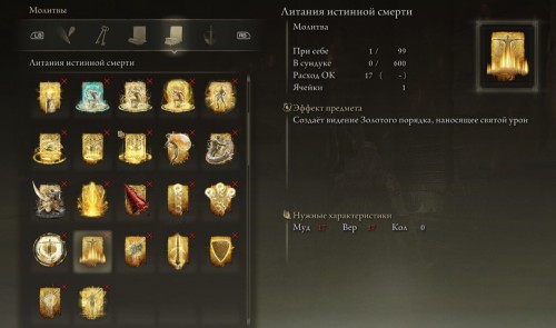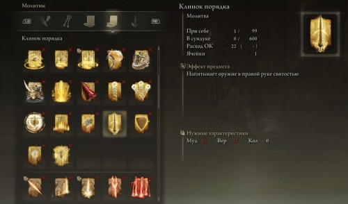 Следует также знать, что для снаряжения персонажа большим количеством молитв вы должны будете увеличить число ячеек памяти. Для этого вам потребуются Камни памяти. Ознакомиться с их расположением можно в нашем другом материале.
