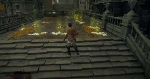 Продолжайте бежать по крышам вперед и влево, а затем спрыгните на нижний уровень к подножью лестницы. Поднимитесь по ней и пройдите по мосту с левой стороны. Затем войдите в храм впереди. Двигайтесь дальше и спуститесь по лесенкам в самый низ. Пройдите в проход слева, сверните вправо и снова выйдите наружу.
