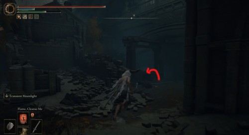 Можно отыскать во время спуска к месту благодати «Проскрипция Яростного Пламени», расположенному в канализации столицы королевства Лейнделл. Подробнее о том, как попасть в эту подземную локацию, мы рассказали в прохождении квеста Хейтты. Когда будете спускаться вниз по балкам, вы найдете нужную молитву на одном из выступов (смотрите 3-й скриншот ниже).