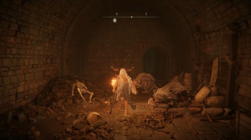 Выйдя в очередную просторную локацию, поверните направо и пройдите наверх по трубе. Двигайтесь по трубам, чтобы перейти на противоположную сторону. Войдите в проход, сверните вправо и поднимитесь по лесенке. Возле статуи будет лежать труп. Осмотрите останки, чтобы взять молитву.