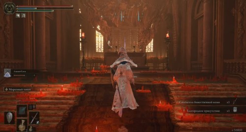 Попав в просторное помещение, сверните налево и спуститесь по лесенке вниз. Пройдите немного вперед, а потом сверните в проход с левой стороны. Здесь вы найдете место благодати. Снова выйдите в основной зал и бегите налево. Через несколько шагов сверните в правый проход и спуститесь вниз.