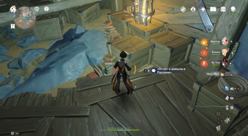 Выберите южную телепортационную точку Основной зоны добычи, а затем сразу же спрыгните вниз с деревянной площадки, развернитесь влево и приземлитесь на платформе уровнем ниже. Здесь на ящиках вы найдете новый документ – изучите его.