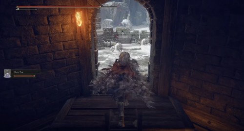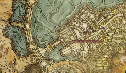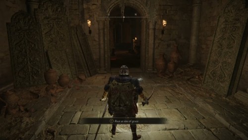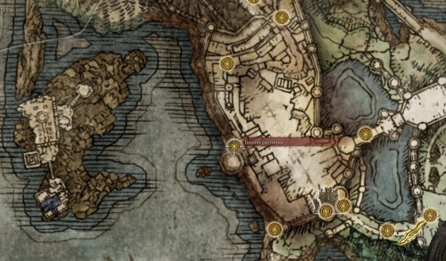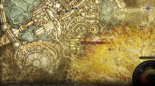 Доберитесь или переместитесь к месту благодати «Укрепленное поместье: первый этаж», расположенному в столице королевства Лейнделле (оно показано на скриншотах ниже). После этого пройдите через левый проход.