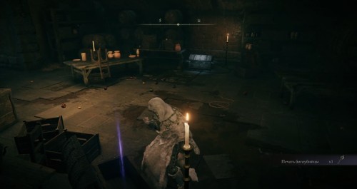 Впереди вы увидите туманную преграду и статую беса. Примените на последней мечевидный ключ, чтобы убрать пелену. Войдите в открывшуюся комнату. Здесь вы обнаружите два сундука, в одном из которых лежит нужная вам книжка, а в другом – Печать богоубийцы.