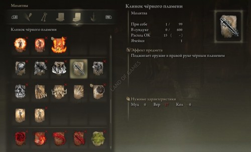 После того как вы передадите молитвослов Корину или Мириэлю, вам удастся приобрести у клирика два новых заклинания: Черное пламя и Клинок черного пламени. Ознакомиться с их требованиями и эффектами можно на скриншотах ниже.