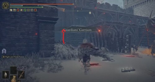 Отыскать его можно в верхней части крепости Гарнизон стражей, которая находится в области Вершины великанов, куда вы сможете попасть с помощью Большого подъемника Рольда. Итак, переместитесь или доберитесь до места благодати «Дорога белой гряды», а затем бегите вперед через частоколы к замку.