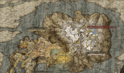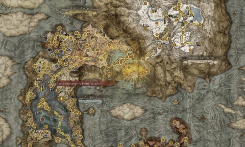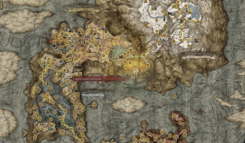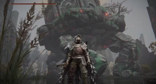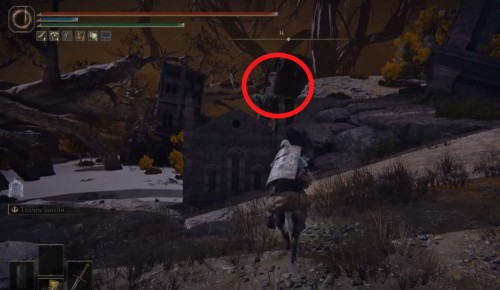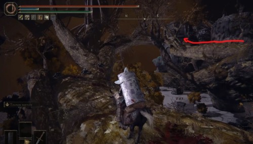Доберитесь или переместитесь к месту благодати «Территория мавзолея», расположенному в северо-восточной части Озерной Лиурнии, а затем начните бежать на север. На востоке, кстати, находится Деревня Яростного Пламени. Совсем скоро вы увидите ходящий замок. Начните уничтожать наросты на его ногах.