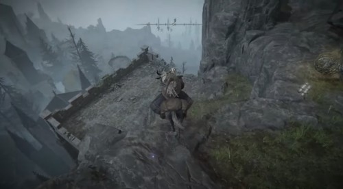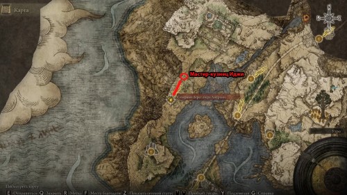 Начните поиски с места благодати Северный берег озера Лиурнии и бегите на север к Руинам королевских владений. Продолжайте бежать вперед, пока не дойдете до иллюзорной стены, показанной на скриншоте выше. Стукните по ней, чтобы она исчезла. Сразу за ней будет место благодати Дорога к поместью. Слева на камне будет сидеть великан с книжкой. Именно он и является нужным вам кузнецом.
