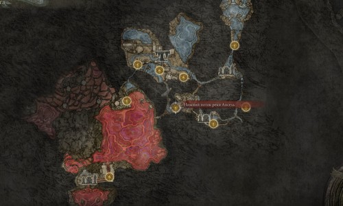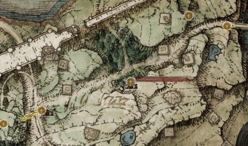 Вы найдете ее недалеко от главного пути, ведущего к замку Грозовой завесы, в месте под названием Лачуга на Грозовом холме. Здесь также имеется место благодати, поэтому если у вас не открыта карта, то просто следите за указателями на ней от других «костров» и ищите любые желтые угольки, находящиеся на правой стороне дороги. Точное местоположение указано на изображениях ниже.