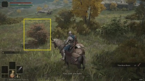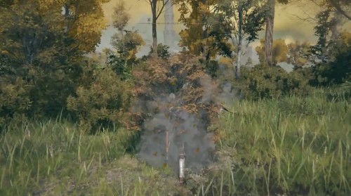 Доберитесь или переместитесь к указанному «костру», расположенному в центре Замогилья. Затем бегите на юго-восток к месту, которое демонстрируется на скриншотах ниже. Внезапно вы услышите чей-то голос, который будет исходить от куста. Подойдите к нему и ударьте один раз (или просто выполните кувырок в его сторону). Кустик исчезнет, а вместо него появится персонаж.