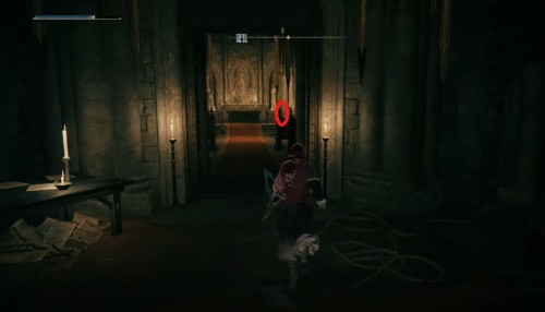Снова сверните вправо и войдите в собор. Спрыгните в круглое отверстие впереди, чтобы спуститься на первый этаж. Зайдите в правый проход и пройдите в часовню. Тут вы и обнаружите Рожера – он будет стоять возле алтаря (его здесь не окажется, если вы уже расправились с Годриком Сторуким). Подробное прохождение этого задания можно прочитать в отдельном гайде.