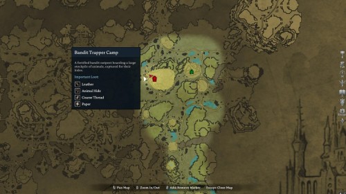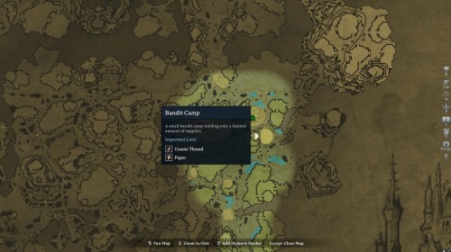 Что касается грубой нити, то ее можно обнаружить в разбойничьих лагерях (Bandit Camps, Bandit Logging Camps и Bandit Trapper Camps). Они будут выпадать с врагов, и их можно будет найти внутри ящиков и бочек. На скриншоте ниже можно увидеть расположение необходимых аванпостов разбойников.
