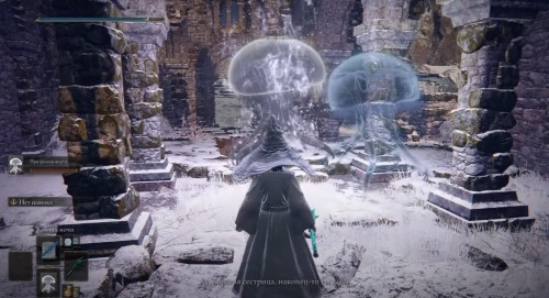Пройдите немного на юг, и вы окажитесь в руинах, охраняемых летучими мышами. В центре локации неподалеку от лестницы, ведущей вниз в запечатанный подвал, вы обнаружите призрачную медузу.