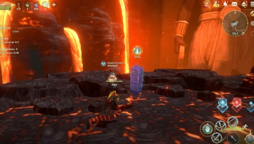 Не пугайтесь огромных расщелин, заполненных лавой и находящихся прямо перед вами – просто поверните налево, спускаясь по лестнице, и активируйте фиолетовый монумент.