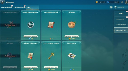 Самый простой вариант – покупка печенья во внутриигровом магазинчике. Откройте основное меню, нажмите на иконку магазина, а затем снова нажмите на кнопку «Магазин». Затем откройте вкладку «Основной магазин» и перейдите в раздел «Предметы для путешествий». Здесь вы найдете печенье.