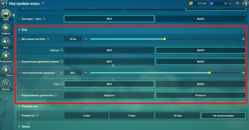 Откройте главное меню и нажмите на иконку в виде шестеренки, чтобы перейти в настройки. Здесь откройте раздел «Игра» и прокрутите немного вниз к категории «Бой». Тут вы сможете выбрать дистанцию автоматического боя, то есть указать расстояние, с которого персонаж будет самостоятельно атаковать противников (может варьироваться от 3-х до 30 метров).