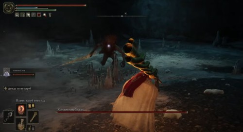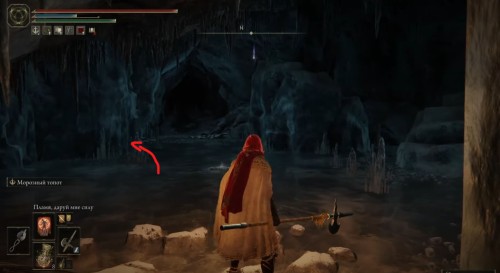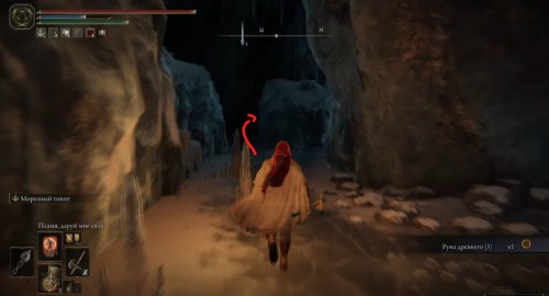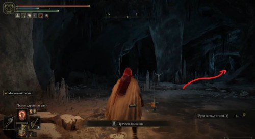 Открыв проход в пещеру, спуститесь вниз по лестнице. Итак, вам нужно будет отыскать местного босса. После активации «костра» пройдите вглубь подземелья по ледяному тоннелю впереди. Не сворачивайте никуда, бегите прямо.
