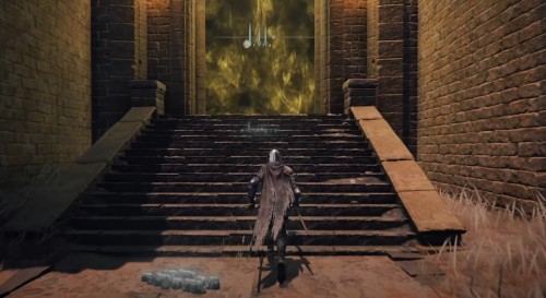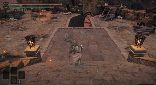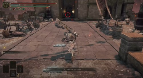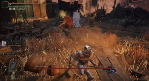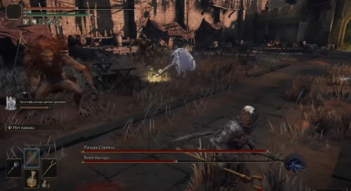 Поговорив с охотником на ведьм, развернитесь, выйдите из здания и спуститесь вниз к месту благодати «Площадь замка Рыжей Гривы». Впереди вы увидите золотую пелену. Пройдите через нее, чтобы вступить в бой с Воином-бастардом. Не забудьте призвать себе духа на помощь.