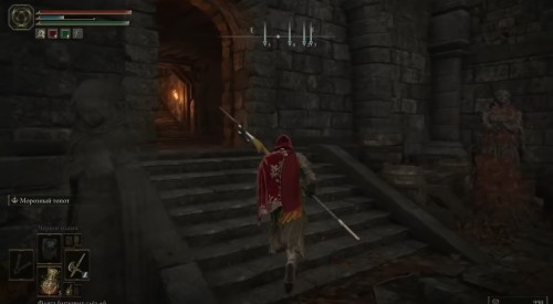 На конце моста вас будет ждать рыцарь. Пройти мимо него трудновато, поэтому придется убить этого врага. Далее сверните направо, пройдите чуточку вперед и войдите в здание слева. Поднимитесь по ступенькам наверх и снова выйдите наружу. Тут на вас нападут собаки и рыцарь. Советуем сначала разобраться с псами, а уже потом браться за противника в латах. Расправившись со всеми, войдите в башню и поднимитесь на лифте.