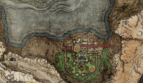 Вам нужно будет для начала попасть в Сумрачный замок, находящийся в северной части плато Альтус, куда можно добраться через Великий подъемник Дектуса. Мы укажем путь в крепость с места благодати «Мост беззакония», расположение которого показано на скриншотах ниже.
