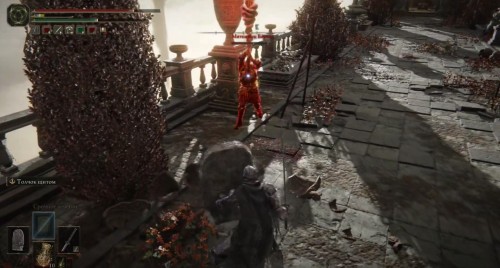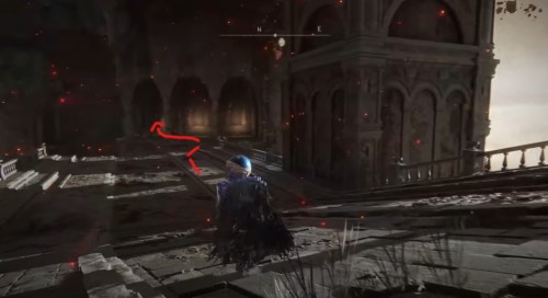 Далее доберитесь или переместитесь к месту благодати «Окрестности великого моста», поднимитесь наверх по лестнице и поверните снаружи налево. Снова поднимитесь по ступенькам и наверху сверните влево. Бегите вперед к проходу чуть вдалеке.
