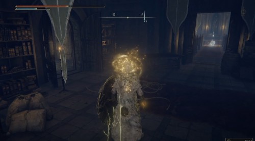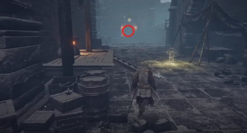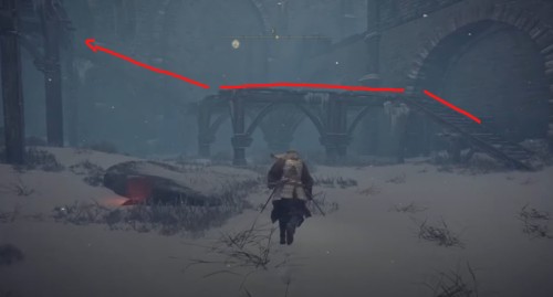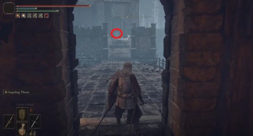 Вам нужно будет войти в большое сооружение, находящееся впереди. На лестнице вас атакует сильный рыцарь, поэтому будьте осторожны. Войдя в здание, слева вы увидите место благодати «Храм затмения». Вернитесь в коридор и пройдите дальше в основной зал. Осмотрите останки возле алтаря, чтобы поднять легендарное оружие.