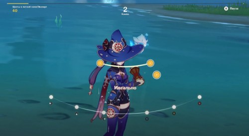 Для начала данного испытания снова поговорите с Гэнтой и выберите вторую композицию, которая является тематической музыкой Аратаки Итто. Вы также можете поменять значение калибровки, так как ритм этой мелодии отличается от музыкальной темы Еимии. На скриншоте ниже показан возможный вариант.