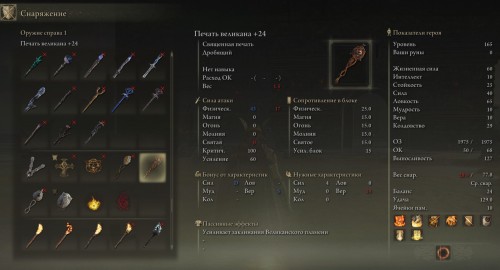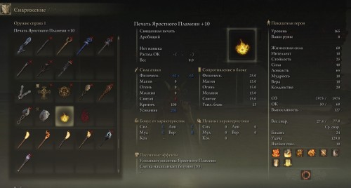 Добавим, что если возьмете печать в двуручный хват, то получите 50-процентный бонус к масштабированию от Силы, то есть урон от молитв повысится еще больше. В этом случае достичь максимальных повреждений можно уже при Силе (30).